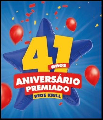 Celebrar o 41º aniversário da Rede Krill é mais do que comprar, é viver uma experiência de conquistas, diversão e prêmios todos os dias. Cada compra se transforma em uma oportunidade real de ganhar e fazer parte de uma festa que já dura quatro décadas. Não perca essa chance de sair de carro novo ou garantir vales-compra de R$500 para usar como quiser nas lojas da Rede Krill.