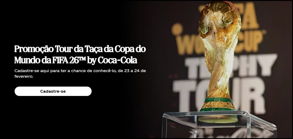 Antes de tudo, vale destacar que o Tour da Taça da Copa do Mundo FIFA™ 2026 by Coca-Cola faz parte de uma jornada global que percorre diversos países levando o troféu oficial a diferentes continentes. No entanto, no Brasil, a experiência ganha um formato ainda mais especial. Isso porque, por meio da promoção, os consumidores podem participar da promoção, realizar o cadastro na promoção e concorrer a ingressos para visitar a taça em eventos organizados em cidades estratégicas.