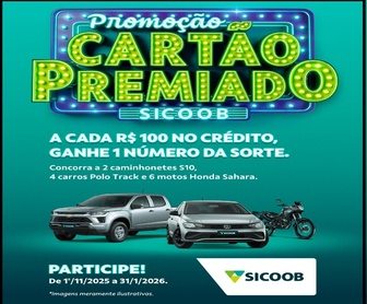 Participar Promoção Cartão Premiado Sicoob 2025/2026: Caminhonetes, Carros e Motos. Saiba os detalhes.